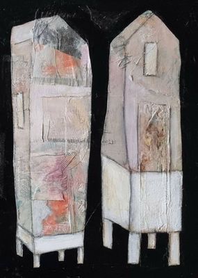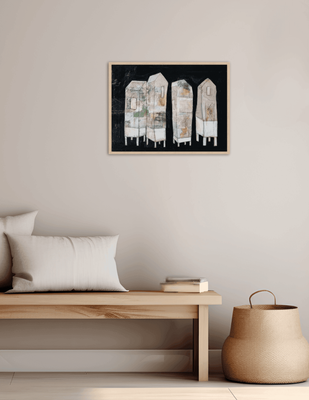 Mixed Media Collage Tea Bags, Paper & Ink on board - framed in timber.