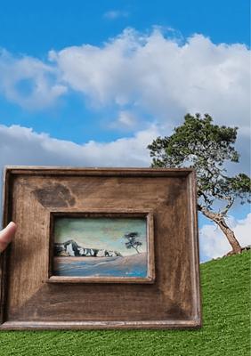Medium: Acrylic on panel, framed in a wide solid timber frame profile.