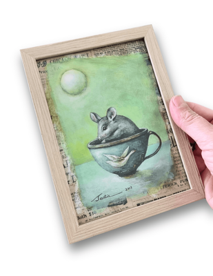 Framed Size: h190mm x w140mm x d15mm - framed in light oak timber with non reflective glass.
