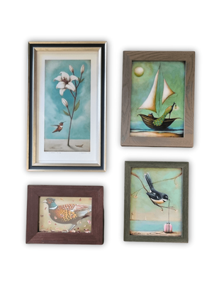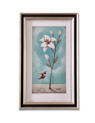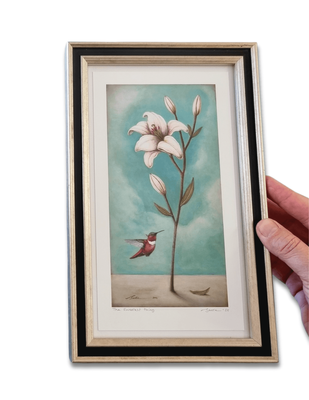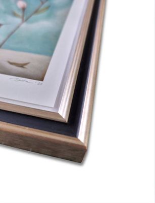 Framed Size: h280mm x w175mm x d25mm - framed in an elegant two tone silver and black with clear glass.