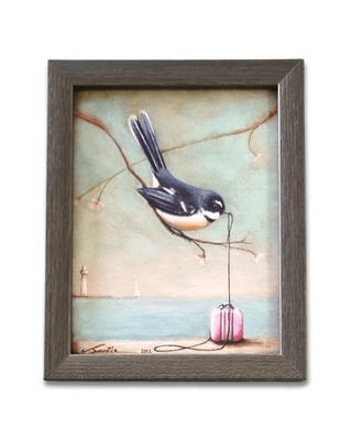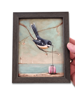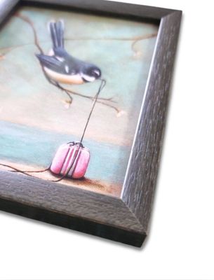 Framed Size: h170mm x w140mm x d20mm - framed in a slim taupe woodgrain with museum grade AR70 art glass.