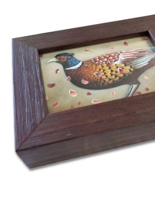 Framed Size: h120mm x w160mm x d40mm - framed in a chunky dark brown woodgrain with clear glass.
