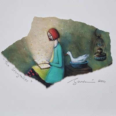 The Storyteller was a much loved print and a sell out edition, released in 2013. The following year I received a handful of prints that were unfit to sell in its entirety. But the central image was still in perfect condition. I thought to create these little fragmented images and decided I'd hang on to them for another day. With my studio cleanup I found these tucked under some folders and a lovely surprise as I'd completely forgotten about them. I call them Short Stories, as they are still Part of the bigger picture.