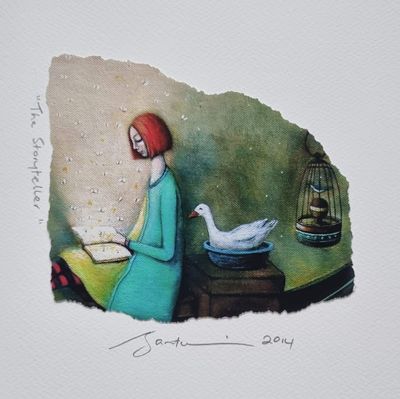 The Storyteller was a much loved print and a sell out edition, released in 2013. The following year I received a handful of prints that were unfit to sell in its entirety. But the central image was still in perfect condition. I thought to create these little fragmented images and decided I'd hang on to them for another day. With my studio cleanup I found these tucked under some folders and a lovely surprise as I'd completely forgotten about them. I call them Short Stories, as they are still Part of the bigger picture.