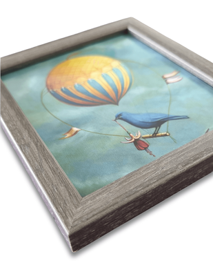 Framed Size: h150mm x w140mm x d20mm - framed in a slim taupe woodgrain with museum grade AR70 art glass.