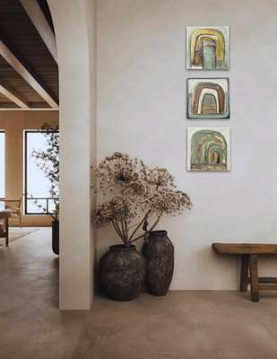 Memory Corridor moves through layers of recall — a passage shaped by accumulation and return. Forms emerge and recede through the surface, suggesting movement without a fixed destination.
