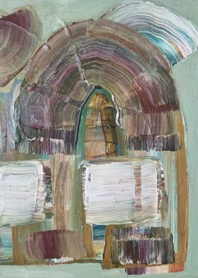 An instinctive convergence of past and present mark-making. Curving contours fold into one another, mapping a journey back and forth across time. The painting carries the physical memory of gesture; thick surfaces hold the evidence of trust regained. It is not destination but motion — an active thread running through every chapter